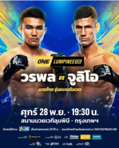 ติดตาม “วรพล vs จูลิโอ” ศึก ONE ลุมพินี 135 ถ่ายทอดสดจากสนามมวยเวทีลุมพินี (รามอินทรา) วันศุกร์ที่ 28 พ.ย.นี้ แฟนกีฬาการต่อสู้ชาวไทยสามารถจองบัตรเข้าชมในสนามผ่านทาง THAI TICKET MAJOR คู่แรกเริ่มเวลา 19.30 น. และรับชมทางช่องทางต่าง ๆ ดังนี้